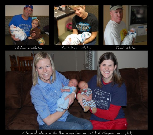 Since the boys have been born we have been shown so much love from our friends and family. We have had delicious meals prepared for us and that alone has been a wonderful blessing to us. With two little mouths to feed every couple of hours our days fly by. We’ll look at the clock and it’s 8:00pm and we have no clue what to eat…then we realize we still have left overs from a meal that was brought to us the day before – Awesome! We have had a lot of visits from friends wanting to come see the boys, if they only knew how much they are already loved! I just wanted to take this opportunity to say thank you to all our friends and family for their love and support since we welcomed our little boys home a few weeks ago.